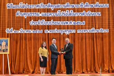 พิธีมอบโล่ประกาศเกียรติคุณสถานศึกษาอาชีวศึกษาต้นแบบด้านคุณธรรม และความโปร่งใสในการดำเนินงาน ประจำปีงบประมาณ พ.ศ 2567
